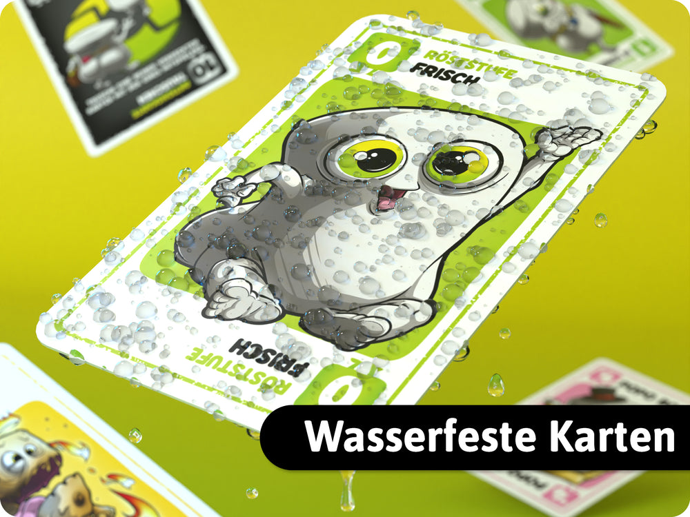 Spiele an jedem Ort! Die wasserfesten Karten eignen sich perfekt für den Strand.