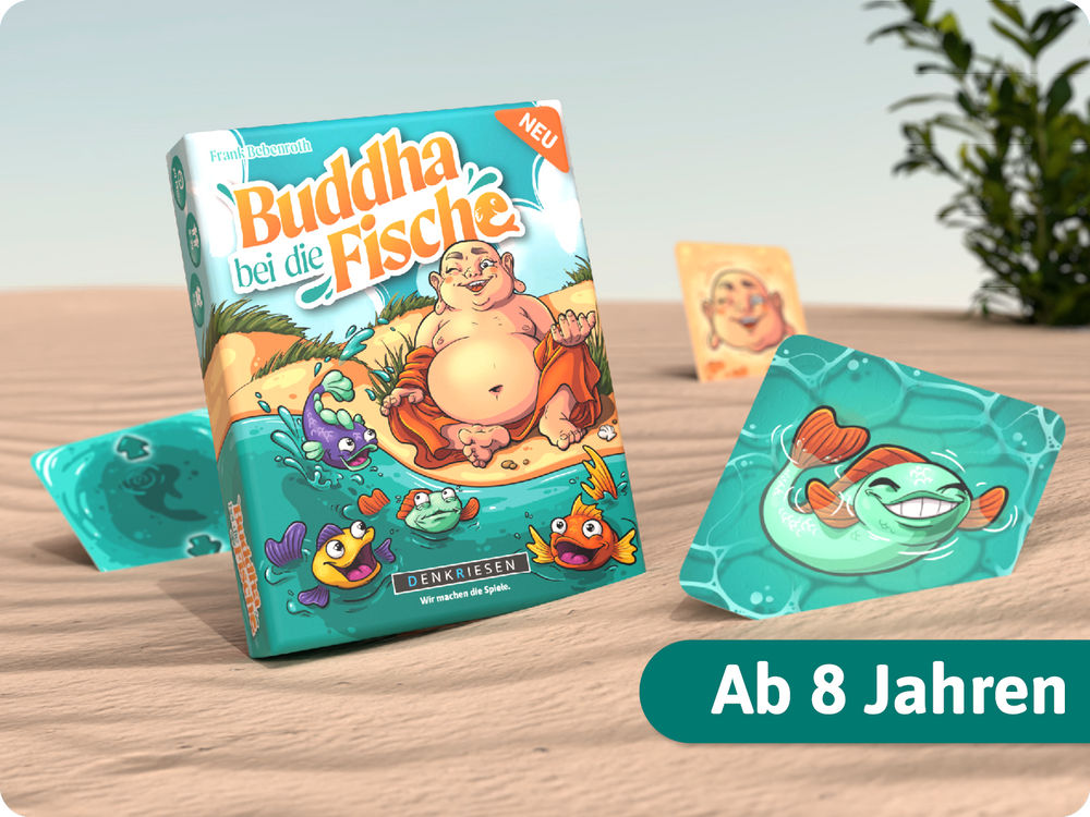 Flossen nach vorn! Bring deine schuppigen Freunde direkt vor den lachenden Buddha – bevor es die anderen tun oder er an ein anderes Ufer wandert. Nur wer clever tauscht und seine Fische immer im Blick behält, gewinnt. Kriegst du deine Fische am schnellsten auf die Reihe?