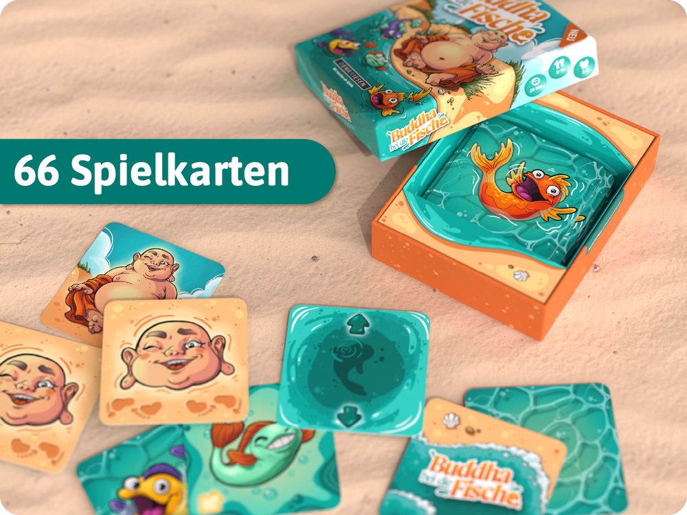 Zu Beginn erhält jeder Spieler seine Karten, die im Laufe des Spiels durch cleveres Tauschen und geschicktes Kombinieren neu angeordnet werden. Runde für Runde versuchst du, deine Fische in die richtige Reihenfolge vor den lachenden Buddha zu bringen. Dabei ist nicht nur Strategie gefragt, sondern auch gutes Timing und Aufmerksamkeit, denn deine Mitspieler verfolgen dasselbe Ziel. Wer seine Karten zuerst korrekt sortiert, entscheidet die Partie für sich.