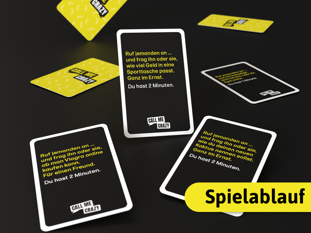 Die Herausforderungskarten bieten eine Vielzahl von kreativen Telefonstreichen, die die Spieler herausfordern, lustige und einzigartige Telefonscherze zu erfinden und umzusetzen. Einfach eine Karte nehmen und loslegen. Das Kartenspiel bietet eine optimale Spieldauer von 45 bis 60 Minuten, was es ideal für unterhaltsame Runden und Spieleabende macht.