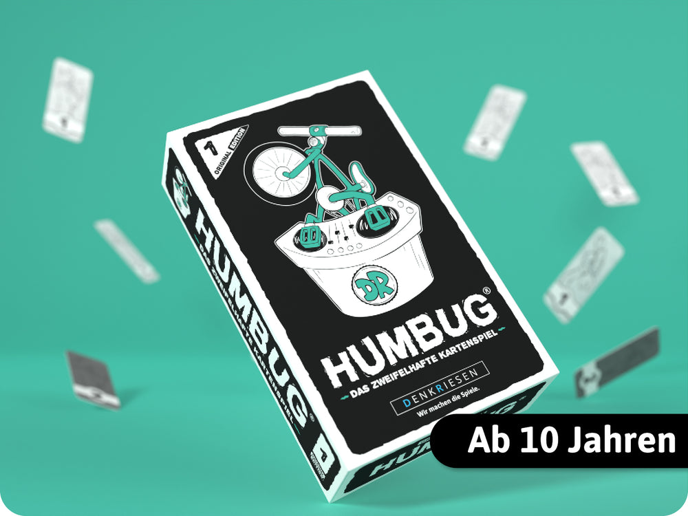 Hochwertige Klappdeckel-Schachtel in coolem Design made by DENKRIESEN. Dieses zweifelhafte Kartenspiel, ist ein verrückt-freches Kartenspiel, ideal zum täuschen, raten, bluffen und wetten! Dieses Spiel steckt voller HUMBUG und ist perfekt für lustig-lockere Spieleabende mit Freunden und Familie!