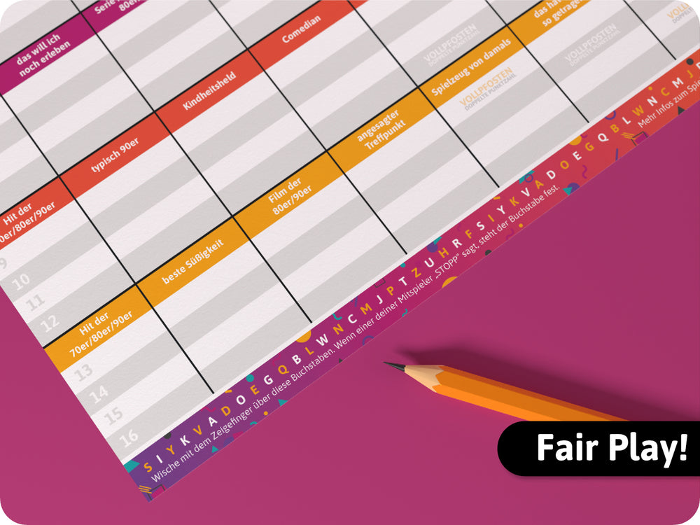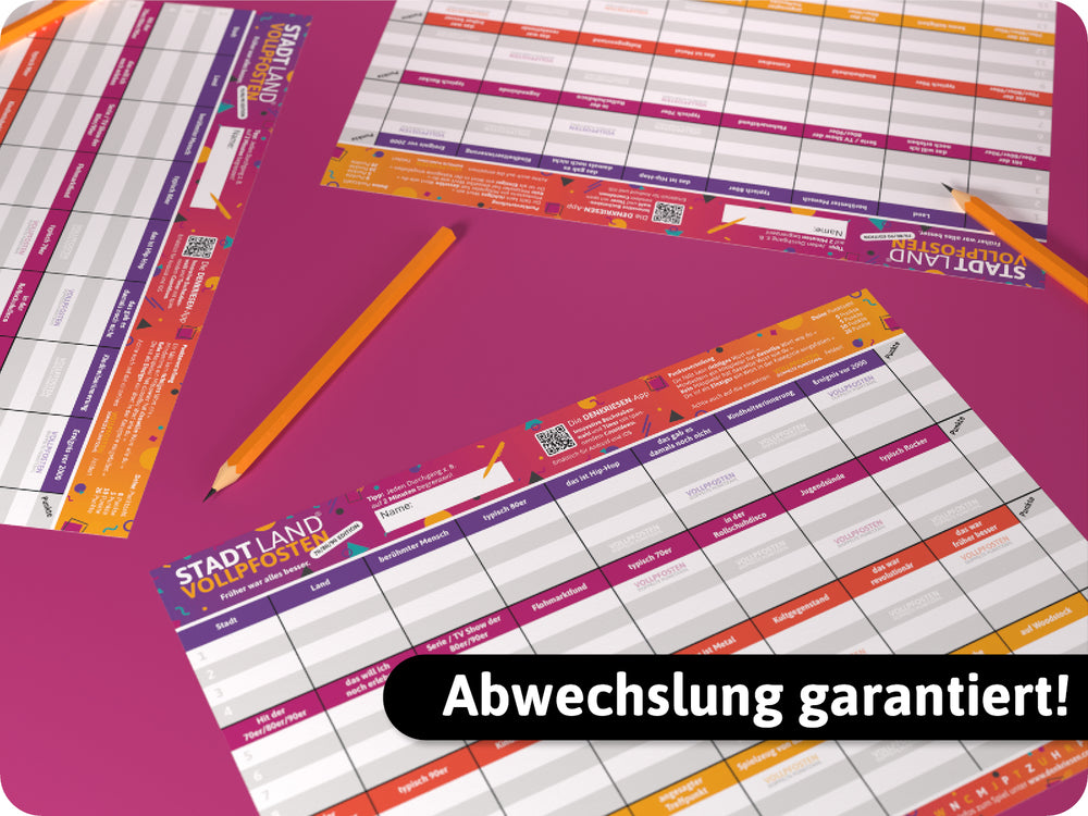 Stadt Land Vollpfosten® Spielblock | 70/80/90 Edition