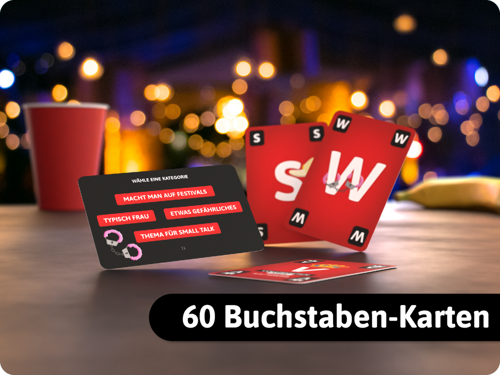 In diesem schnellen Kartenspiel erhält jeder Spieler 8 Buchstaben-Karten und legt passende Begriffe zu vorgegebenen Kategorien ab, wobei der Schnellste in jeder Runde punktet und das Ziel ist, alle Karten loszuwerden, während Aktions- und Jokerkarten für zusätzliche Spannung sorgen.