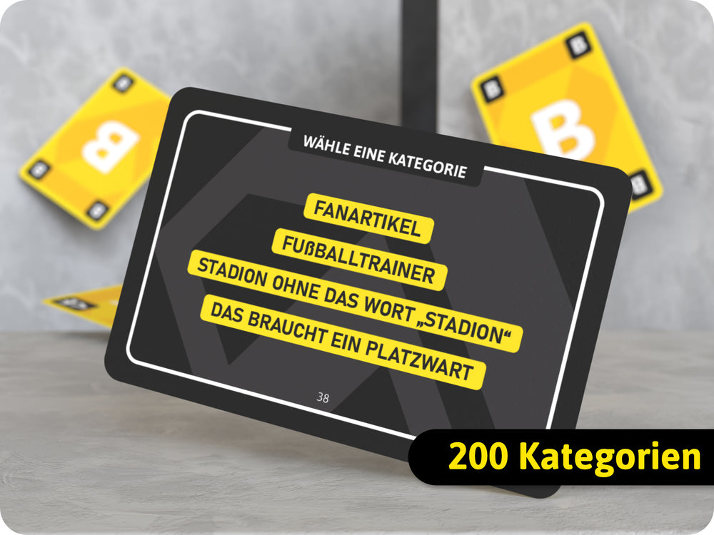 Die exklusive BVB-Edition des Kartenspiels "STADT LAND VOLLPFOSTEN®" begeistert Fußballfans mit einer einzigartigen Borussia Dortmund Note. Das umfangreiche Karten-Set mit 60 Buchstabenkarten ermöglicht kreative Kombinationen, während 200 verschiedene Kategorien für langanhaltenden Spielspaß sorgen. Empfohlen ab 8 Jahren, eignet sich das Spiel perfekt für Familien, Freunde und Fans von Ratespielen. Die besondere BVB-Edition macht es zu einem idealen Geschenk für Fußballfans jeden Alters.