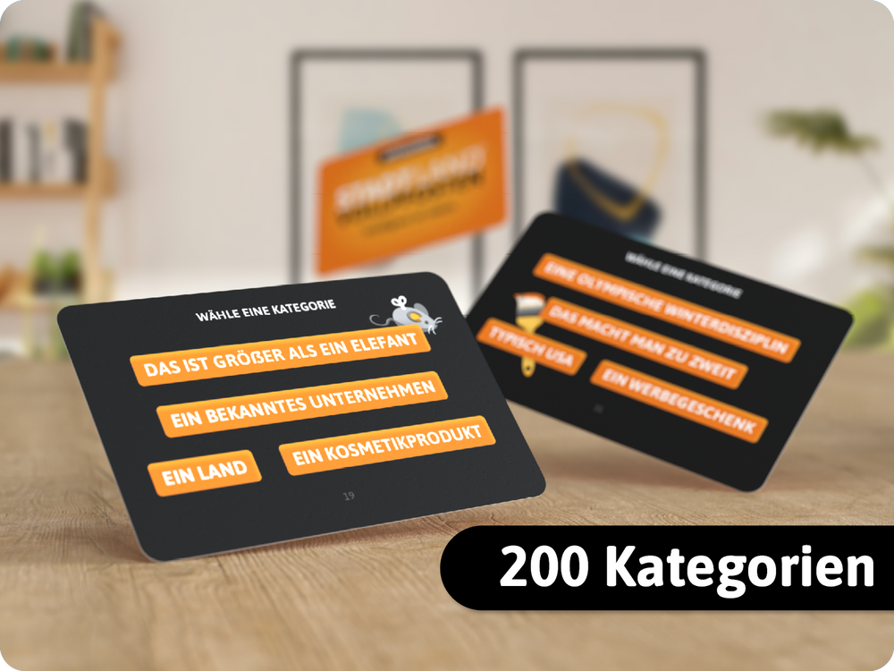 Das Spiel ist im nu erklärt und der Spielspaß kann beginnen. Es bleiben keine offenen Fragen und die Spielrunden sind kurzweilig und spannend. Durch die 200 verschiedenen Kategorien ist immer für genug Abwechslung gesorgt.