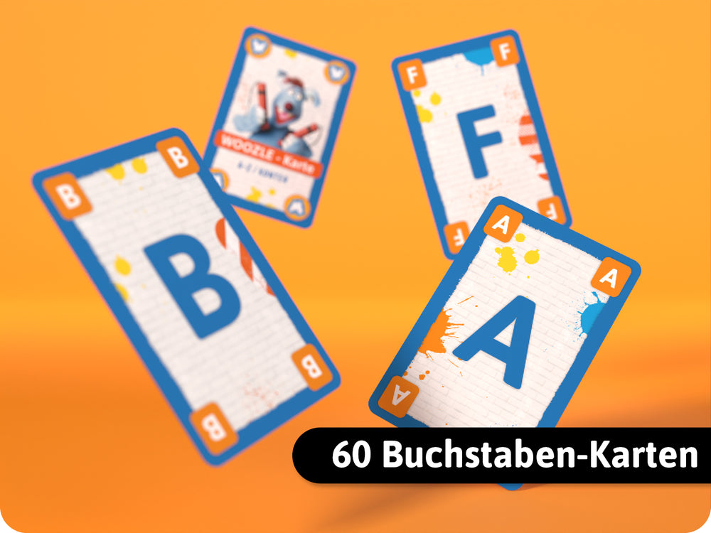 In diesem schnellen Kartenspiel erhält jeder Spieler 8 Buchstaben-Karten und legt passende Begriffe zu vorgegebenen Kategorien ab, wobei der Schnellste in jeder Runde punktet und das Ziel ist, alle Karten loszuwerden, während Aktions- und Jokerkarten für zusätzliche Spannung sorgen.