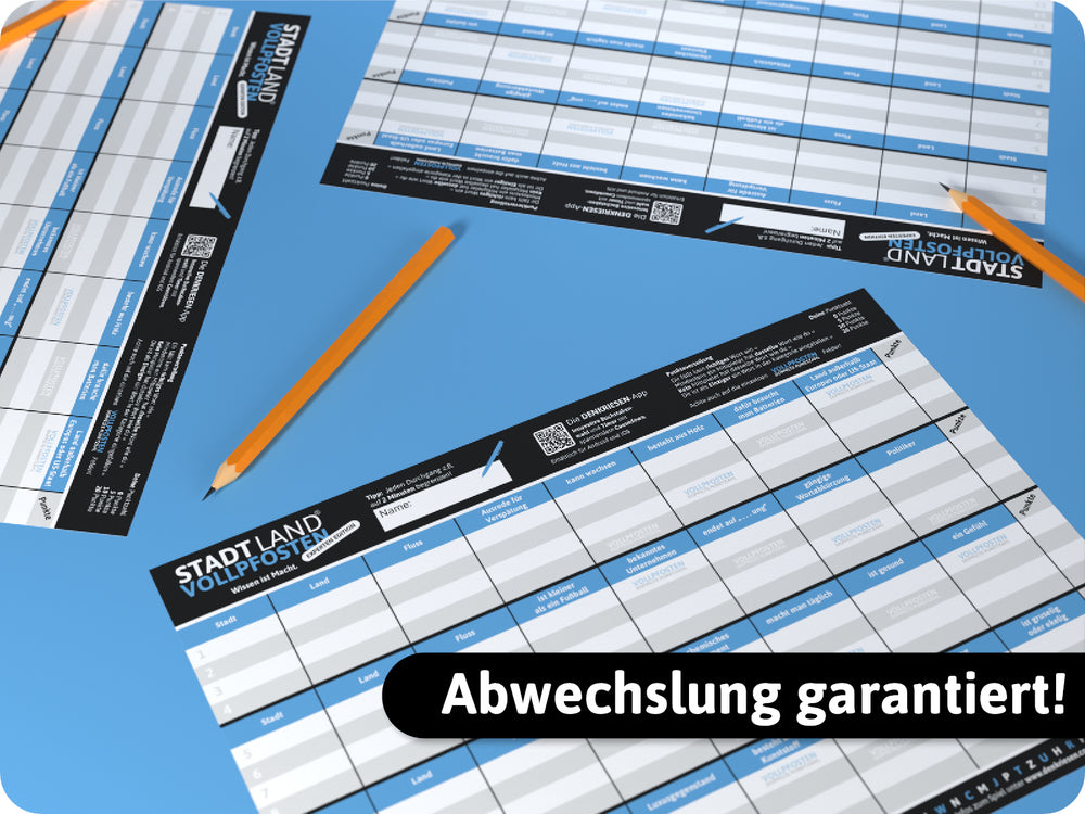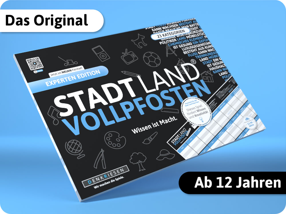 Die anspruchsvolle Edition für alle Fans des Kultspiels STADT LAND VOLLPFOSTEN® 23 herausfordernde Kategorien bringen auch die klügsten Köpfe ins Schwitzen. Spaß garantiert!