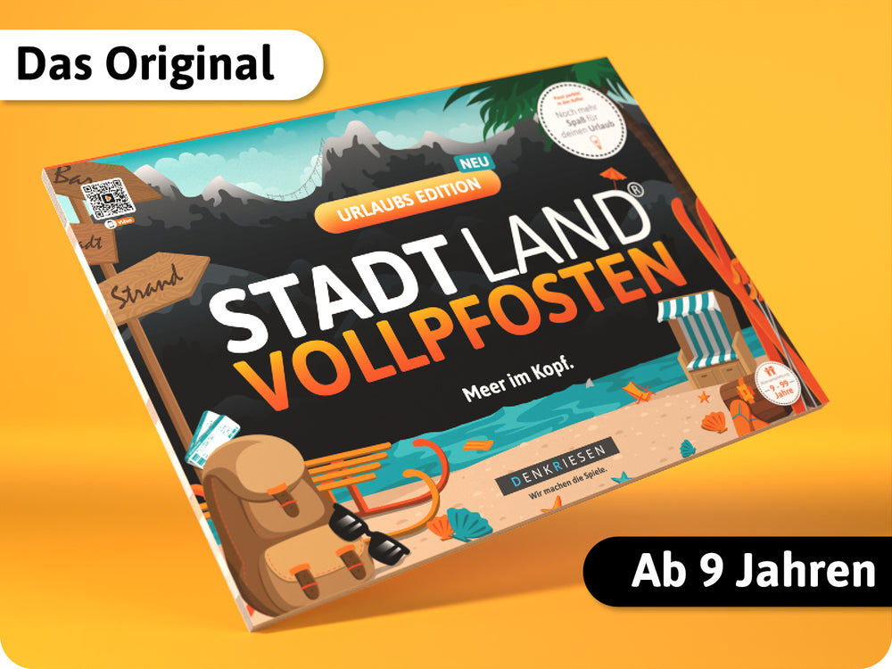Die urlaubsreife Edition des Kultspiels STADT LAND VOLLPFOSTEN rund ums Thema Ferien und Reisen.