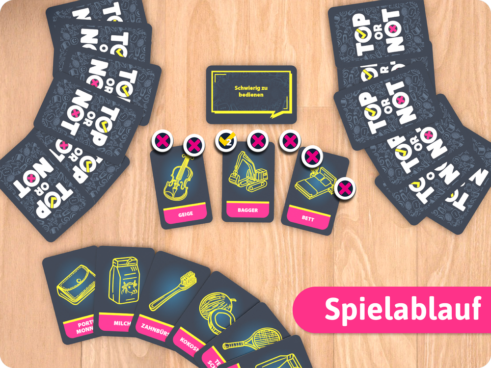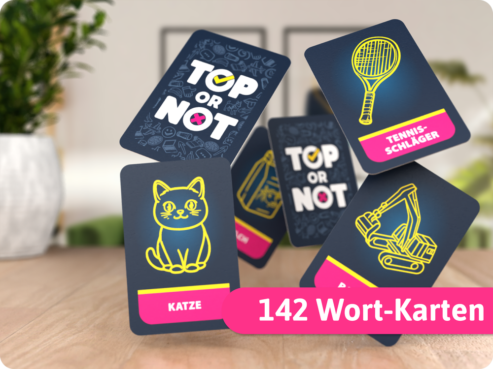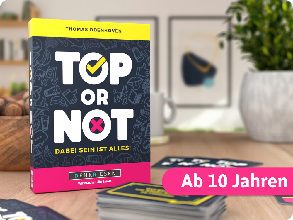Bist du immer top dabei? In diesem wilden Partyspiel heißt es: Diskutieren, überzeugen, tricksen! Lustige Themen sorgen für Gesprächsstoff und Lacher. Nur wer seine Begriffe klug unterbringt, gewinnt das Spiel. Mit Charme, Witz und ein bisschen Glück sicherst du dir den Platz an der Spitze!
