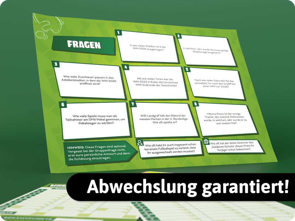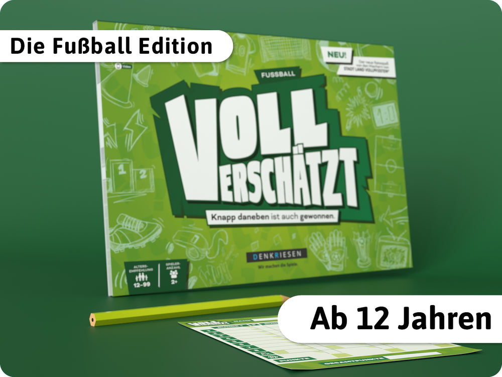 Schnapp dir deine Freunde und begebt euch in die Fußball-Welt von VOLL VERSCHÄTZT – dem verrücktesten Schätzspiel aller Zeiten. Hier erwarten dich 350 sportliche Fragen rund um das Thema Fußball, die selbst die besten Schätzer ins Schwitzen bringen! Egal, ob du ein wandelndes Lexikon oder eher der Nichtswisser bist: Hier zählt der Spaß – Wissen ist Nebensache!